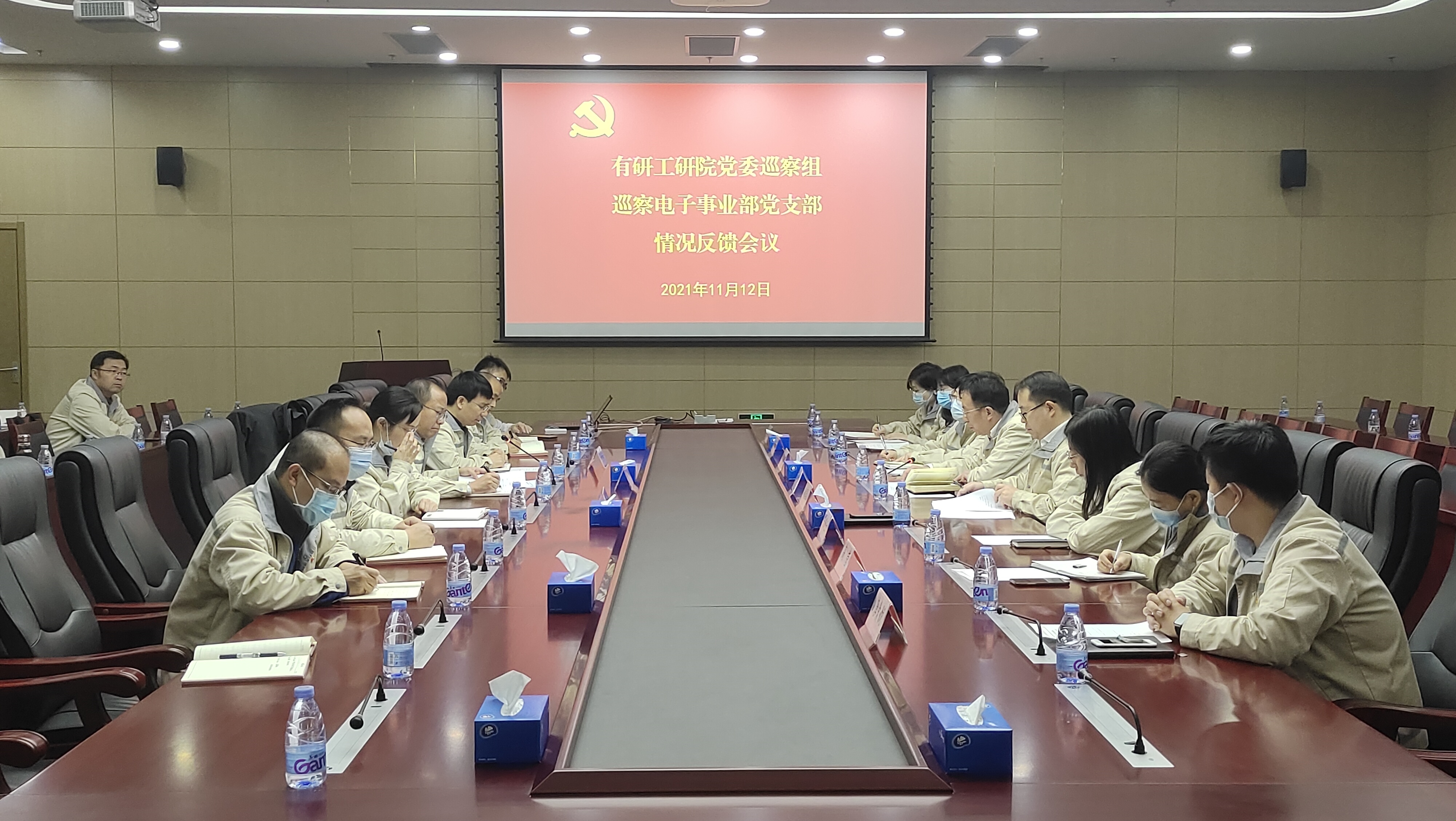 11月9日,有研工研院黨委巡察組召開巡察電子材料事業(yè)部黨支部情況反饋會。有研工研院黨委書記、巡察工作領導小組組長米緒軍,巡察組組長姚國成和全體巡察組成員,電子材料事業(yè)部黨支部全體黨員參加會議,會議由電子材料事業(yè)部黨支部紀檢委員、副總經理楊劍主持。
