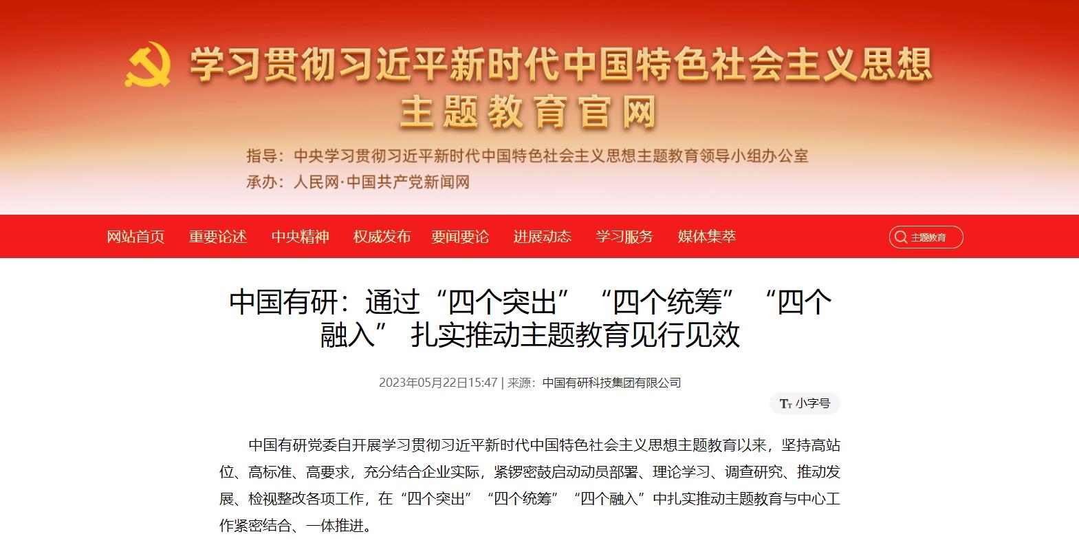 5月22日,國(guó)資委官網(wǎng)發(fā)布《中國(guó)有研:通過(guò)“四個(gè)突出”“四個(gè)統(tǒng)籌”“四個(gè)融入”,扎實(shí)推動(dòng)主題教育見(jiàn)行見(jiàn)效》。