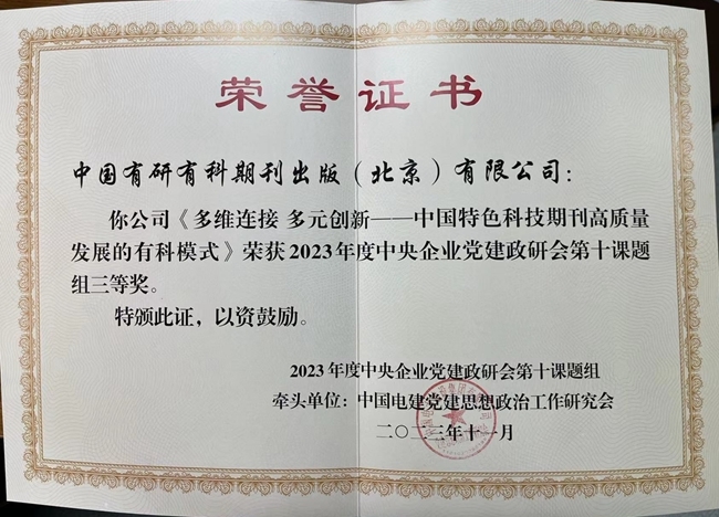 有科出版黨支部不斷探索黨建與業(yè)務工作深度融合新格局,以高質量黨建引領保障高質量發(fā)展,所形成的《加快培育世界一流科技期刊 為實現高水平科技自立自強貢獻有科出版力量》成果獲中國有研思想政治工作研究會第十八次年會二等獎。
