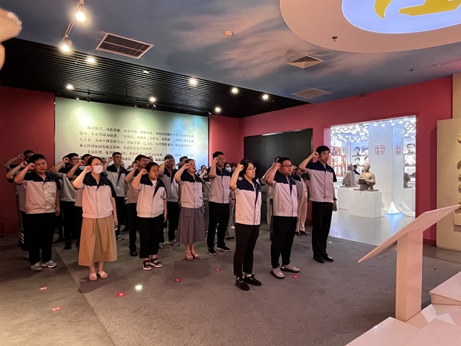 全體黨員在展館宣誓廳重溫入黨誓詞,大家高舉右拳,在黨支部書記、總經(jīng)理曹波同志的帶領(lǐng)下,感悟初心使命,再次接受思想淬煉和精神洗禮,用擲地有聲的誓詞表達(dá)了對黨虔誠而執(zhí)著、至信而深厚的真摯情感。