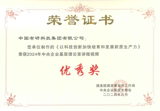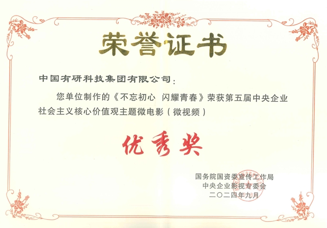 中國有研選送的《不忘初心 閃耀青春》獲第五屆中央企業(yè)社會主義核心價值觀主題微電影(微視頻)優(yōu)秀作品,《以科技創(chuàng)新加快培育和發(fā)展新質(zhì)生產(chǎn)力》獲2024年中央企業(yè)基層理論宣講100部微視頻優(yōu)秀作品。
