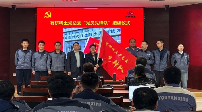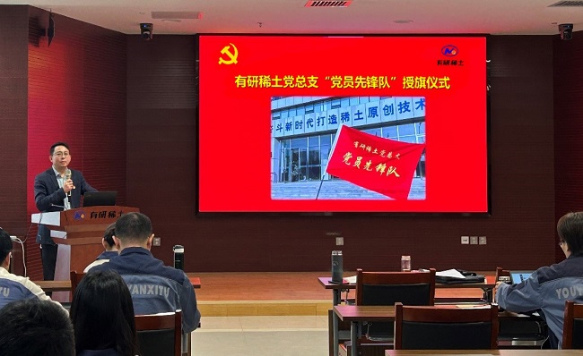 為深入貫徹黨的二十屆三中全會精神,增強核心功能,提升核心競爭力,結(jié)合有研稀土當前形勢,有研稀土黨總支成立7個“黨員先鋒隊”。10月31日,公司舉行了命名授旗儀式,黨總支書記、總經(jīng)理劉榮輝為“黨員先鋒隊”授旗。