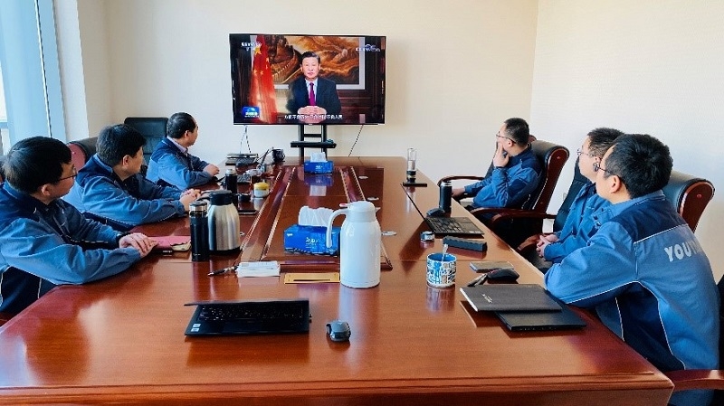學(xué)習(xí)國(guó)家主席習(xí)近平的重要講話精神。2022年1月1日,有研稀土黨總支書記、總經(jīng)理于敦波組織會(huì)議,全體黨總支委員、經(jīng)營(yíng)班子成員,在燕郊基地會(huì)議室集中學(xué)習(xí)了國(guó)家主席習(xí)近平發(fā)表的新年賀詞。迎著新年第一天的陽(yáng)光,與會(huì)人員回首意義非凡的2021,從風(fēng)云激蕩的百年黨史讀懂中國(guó)共產(chǎn)黨人矢志不渝的初心使命,從碩果累累的發(fā)展成就聆聽大國(guó)奮進(jìn)的鏗鏘足音,從“民之所憂,我必念之;民之所盼,我必行之”的扎實(shí)舉措理解什么是“大國(guó)之重”,從平凡英雄的拼搏奮斗感受追夢(mèng)圓夢(mèng)的時(shí)代洪流……可親可敬的人民,日新月異的發(fā)展,賡續(xù)傳承的事業(yè),托起一個(gè)堅(jiān)韌不拔、欣欣向榮的新時(shí)代中國(guó),凝聚起“一起向未來”的堅(jiān)定信念與磅礴力量。大家在深感振奮的同時(shí),也對(duì)2022年及未來的發(fā)展充滿信心。