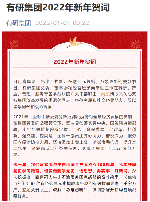 新年伊始,有研稀土黨總支和高管班子集體學(xué)習(xí)國(guó)家主席習(xí)近平發(fā)表的2022新年賀詞,學(xué)習(xí)有研集團(tuán)黨委書記趙曉晨有關(guān)講話精神和有研集團(tuán)新年賀詞,研討公司戰(zhàn)略和重點(diǎn)項(xiàng)目,嚴(yán)格落實(shí)安全生產(chǎn)各項(xiàng)要求,以嶄新的姿態(tài)、昂揚(yáng)的斗志啟航新征程,一起向未來。