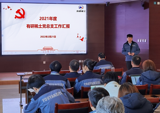 2022年2月21日,有研稀土黨總支召開2022年度第一次黨員大會(huì),黨總支書記、總經(jīng)理于敦波代表黨總支委員會(huì)向全體黨員報(bào)告2021年度黨總支工作,接受黨員評(píng)議。黨總支委員、經(jīng)營(yíng)班子成員及70余名黨員現(xiàn)場(chǎng)參加了會(huì)議,樂山、榮成和青島子公司黨員通過視頻參會(huì)。黨總支副書記、副總經(jīng)理許國(guó)棟主持會(huì)議。
