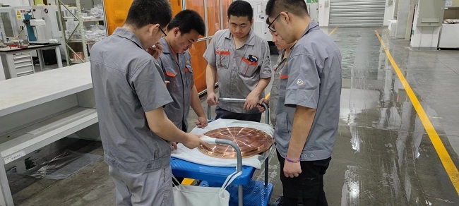 為了更有效的保障生產(chǎn),陳明毫不猶豫選擇了駐廠辦公,每天深入生產(chǎn)一線加班加點(diǎn)到深夜才返回辦公室休息。在陳明的帶領(lǐng)下,有研億金生產(chǎn)部門全體員工斗志昂揚(yáng)、齊心協(xié)力。通過全體員工的不懈努力和各部門通力合作,有研億金實(shí)現(xiàn)增產(chǎn)提效,5月份公司靶材產(chǎn)品產(chǎn)出超過2600塊。