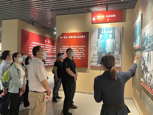 在孟良崮戰(zhàn)役遺址區(qū),全體黨員烈日下重走行軍路,瞻仰“孟良崮戰(zhàn)役紀念碑”,切身感受革命先輩的奮斗精神;在戰(zhàn)役紀念館,通過文物史料的學(xué)習(xí),深刻感悟沂蒙精神。