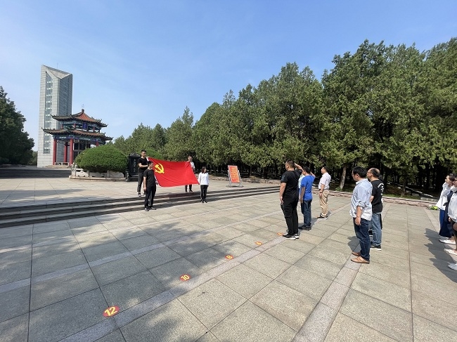 在戰(zhàn)役紀念館烈士墓區(qū),青島聯(lián)合黨支部舉行了“向英雄致敬”紀念儀式,表達對革命先烈們的崇高敬意和緬懷之情。面對鮮紅的黨旗,全體黨員高舉右拳,重溫入黨誓詞,不忘初心、牢記使命。