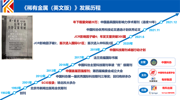 不忘初心,方得始終。在主管、主辦、出版單位以及歷屆編委會的領(lǐng)導(dǎo)和支持下,《稀有金屬(英文版)》始終堅持“刊物質(zhì)量是核心,內(nèi)容是關(guān)鍵,提升影響力是目標(biāo)”的宗旨,在一流科技期刊一流學(xué)術(shù)平臺的道路上不斷探索和實踐,聚焦內(nèi)容質(zhì)量建設(shè)、期刊品牌建設(shè)、辦刊能力建設(shè)、出版團隊建設(shè)以及服務(wù)能力建設(shè),立足自身,放眼世界,對標(biāo)一流,不斷提升期刊影響力。