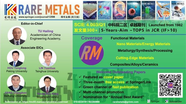 《稀有金屬(英文版)》的發(fā)展,是自我革新的需要。為了滿足新時代對科技文化的需求,《稀有金屬(英文版)》始終堅持創(chuàng)新、銳意進取、不斷革新。在期刊內(nèi)容方面,期刊不再拘泥于傳統(tǒng)冶金領(lǐng)域,兼容并蓄,將面向未來的能源材料、二維材料、催化材料納入期刊范疇,做到新與舊的平衡,做到創(chuàng)新和傳統(tǒng)的有機結(jié)合。在提高質(zhì)量方面,期刊邀請了一批具有國際化視野的專家進行層層把關(guān),嚴(yán)格篩選,優(yōu)中選優(yōu),使期刊論文質(zhì)量穩(wěn)步提升。在平臺建設(shè)方面,期刊重視服務(wù)效果,使用國際先進的投審稿系統(tǒng),同時打造全方位的融媒體傳播平臺,增強作者和讀者的體驗感和科技感。在提升影響力方面,期刊積極宣傳、努力合作,開展相關(guān)學(xué)術(shù)研討會,提高在國內(nèi)和國際的影響力。
