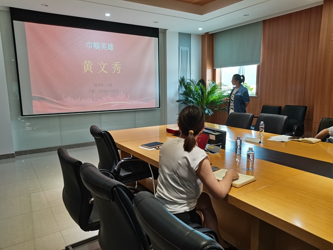 比賽過(guò)后,黨支部開(kāi)展了2022年第一期紅色故事分享會(huì)。王濤、葉靜、汪穎、駢龍飛和陳永達(dá)5位同志分別選取新疆生產(chǎn)建設(shè)兵團(tuán)王震將軍、趙一曼、黃文秀典型人物以及平江起義、十三陵水庫(kù)等歷史事件和故事,采用文字和影音資料的形式,生動(dòng)地向參會(huì)人員講述紅色故事,分享自己對(duì)人物或歷史學(xué)習(xí)的感悟。