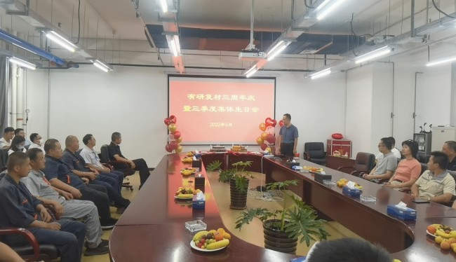 9月19日,有研復(fù)材舉辦公司成立3周年慶暨三季度集體生日會。黨總支書記、董事長樊建中出席并講話??偨?jīng)理、工會主席陳春生,財務(wù)總監(jiān)、總法律顧問趙彩霞,副總經(jīng)理馬志新,火炬特材副總經(jīng)理李祥、楊玉衛(wèi)出席會議。公司部分員工及在讀研究生參加會議。