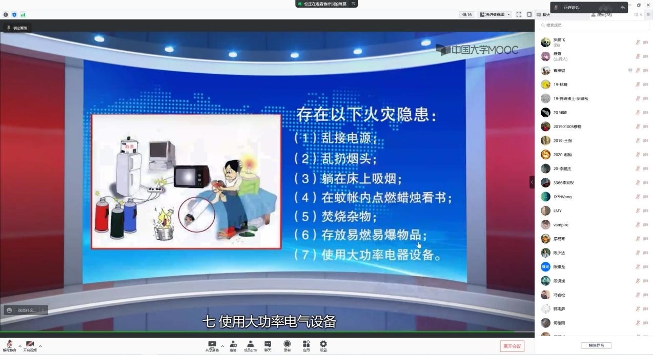活動首先針對常見的火災(zāi)隱患和消防安全重點部位的火災(zāi)預(yù)防這兩項內(nèi)容,組織觀看了《高校學(xué)生消防安全教育》系列課程視頻,引導(dǎo)在讀研究生們提高消防觀念,加強(qiáng)火災(zāi)預(yù)防意識,排除身邊火災(zāi)隱患,保障人身安全。