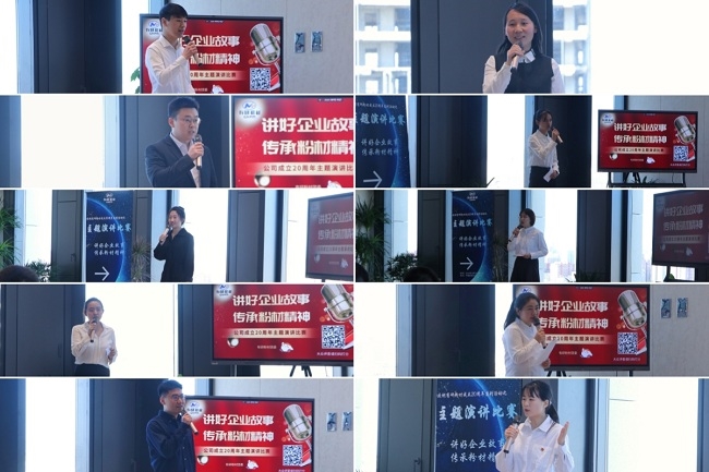 來自有研粉材總部及5家所屬公司的10位選手參加比賽,青春洋溢的他們結(jié)合自身體驗(yàn)和工作經(jīng)歷,從小切口講公司歷史、述身邊故事,為每一位觀賽者帶來了一場視聽盛宴?;魜喨阂浴蹲鲆豢脴?,尋一縷光》為題,感悟粉材榜樣的力量;王育婷以時(shí)間為脈絡(luò),分享了有研重冶“十年蛻變,二次騰飛”的故事;劉書彤追述《保持饑餓,保持愚蠢》八個(gè)字的來源,多角度解讀公司核心價(jià)值觀“知崇禮卑,止于至善”的含義……