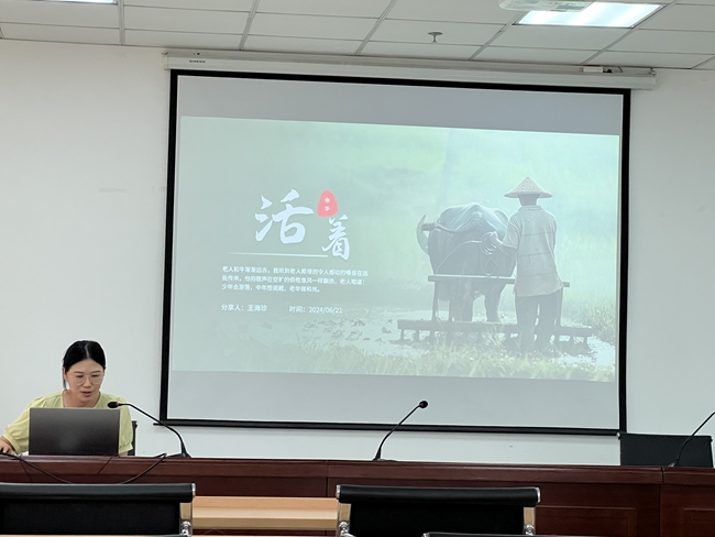 財(cái)務(wù)管理部王海珍介紹了《活著》,分享作者創(chuàng)作思路、主人公及家人的經(jīng)歷和心理變化,以及自己對(duì)于生活的感悟。