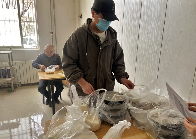 園區(qū)封閉管理后,為減少園區(qū)堂食交叉感染風(fēng)險(xiǎn),防疫服務(wù)小隊(duì)成員將食堂盒飯分發(fā)給員工,以便于大家在食堂和辦公室中單獨(dú)進(jìn)餐。每隔三天,防疫服務(wù)小隊(duì)還會(huì)從外部統(tǒng)一采購(gòu)生活日用物資,將其分發(fā)給大家,保障員工的起居飲食。