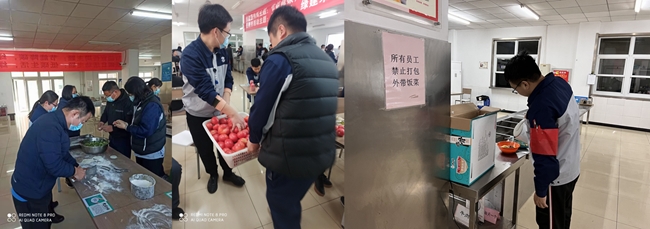 有研國晶輝團(tuán)支部不定期給職工分發(fā)新鮮水果和蔬菜,并聯(lián)合條保部開展“包餃子,吃餃子”活動(dòng),同時(shí)成立青年“后勤小分隊(duì)”,提供全方位服務(wù)保障,不斷豐富駐廠職工生活、飲食多樣性,保障職工身體健康,使駐廠職工感受到家的溫暖。