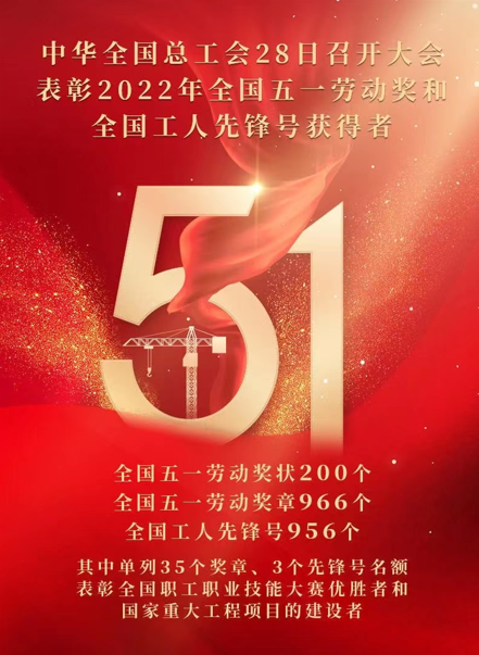 4月28日,中華全國總工會表彰了2022年全國五一勞動獎和全國工人先鋒號獲得者,全國五一勞動獎狀200個,全國五一勞動獎章966個,全國工人先鋒號956個。有研集團榮獲全國五一勞動獎狀。