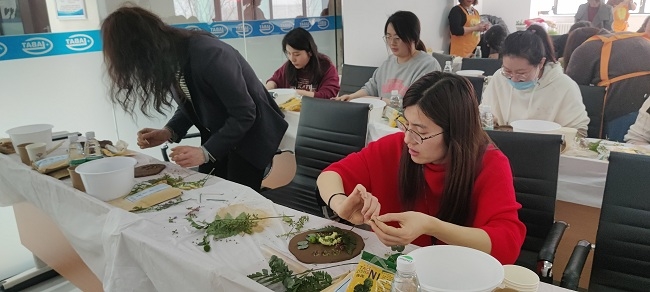 活動(dòng)現(xiàn)場,女同胞們?cè)诶蠋煹闹v解指導(dǎo)下,認(rèn)真挑選、充分想象、精巧構(gòu)思,完全沉浸在拓印創(chuàng)作中。她們根據(jù)植物形貌、樣式不同,精心組織、搭配、構(gòu)圖、拓印、澆筑,用靈巧的雙手,將植物最美瞬間保留在柔軟的陶泥之中,制作出一幅幅化石一般、創(chuàng)意十足的拓印作品,展現(xiàn)出積極樂觀、熱愛生活的精神面貌。