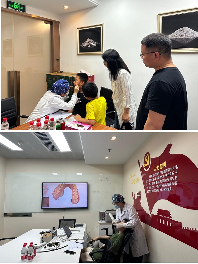 活動現(xiàn)場,醫(yī)生們分三組為小朋友檢查口腔健康情況并針對不同情況提出治療建議、體驗數字化口腔掃描,以及對兒童刷牙和牙線使用指導。針對不同的牙齒情況,醫(yī)生們耐心且詳細地告知大家正確保護牙齒、預防口腔疾病的知識和方法。