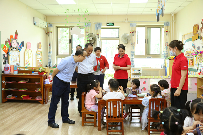 六一國際兒童節(jié)當(dāng)日,中國有研副總經(jīng)理毛昌輝到有研幼兒園總園、分園慰問全體師生,并到有研衛(wèi)生站慰問全體醫(yī)護人員。集團安全環(huán)保與保障部總經(jīng)理董明星,有研興友執(zhí)行董事、總經(jīng)理沈健,副總經(jīng)理兼幼兒園園長張福萍等有關(guān)人員陪同慰問。
