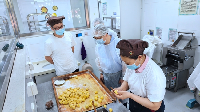 隨后,毛昌輝走進幼兒園食堂,詢問了孩子們的飲食及營養(yǎng)搭配,對幼兒園的伙食質(zhì)量給予了充分的肯定,并走進美術(shù)教室及活動室,查看了幼兒的活動場所。