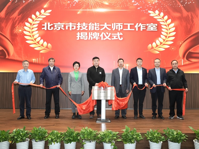 與會(huì)領(lǐng)導(dǎo)為“北京市技能大師工作室”揭牌。
