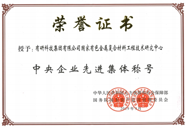 2019年獲“中央企業(yè)先進集體”稱號、2020年獲中國有色金屬工業(yè)科學技術獎一等獎。