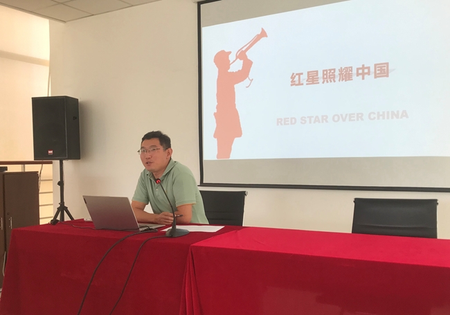 柏祥濤分享了美國作者埃德加·斯諾所著的《紅星照耀中國》一書?;顒?dòng)當(dāng)天正是毛主席逝世46周年紀(jì)念日,今天分享的這本書籍還原原著中的諸多細(xì)節(jié),有血有肉地塑造與再現(xiàn)了毛澤東、周恩來、彭德懷等革命領(lǐng)袖的寫實(shí)形象,客觀公正地了解這支成功建立共和國的革命隊(duì)伍,詩意詮釋“不忘初心”的真諦,給了在場很多同事啟發(fā)。