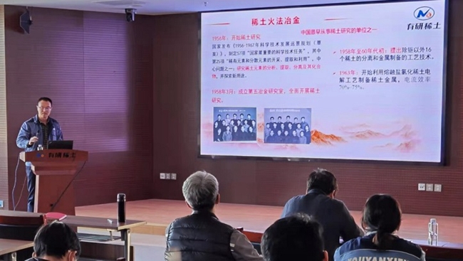 11月24日,有研稀土黨總支舉辦“學(xué)黨史·學(xué)稀土發(fā)展史”系列講座第三講,公司副總經(jīng)理、中國(guó)稀土學(xué)會(huì)火法冶金委員會(huì)主任王志強(qiáng)做了題為“稀土火法冶金”的專題報(bào)告。報(bào)告以時(shí)間為軸,詳細(xì)講述了稀土火法冶金的發(fā)展歷史,涵蓋了電解法制備稀土金屬、還原法制備稀土金屬、中重稀土金屬的發(fā)展、輕稀土金屬的發(fā)展和高純稀土及靶材等內(nèi)容,講述了有研稀土火法冶金工藝技術(shù)不斷發(fā)展的歷程。王志強(qiáng)通過回憶有研稀土金屬事業(yè)部、樂山有研公司火法冶金事業(yè)發(fā)展的艱辛歷程,表達(dá)對(duì)前輩們的敬意,并激勵(lì)大家發(fā)揚(yáng)繼承優(yōu)良傳統(tǒng),努力將火法冶金工作不斷推向前進(jìn)。