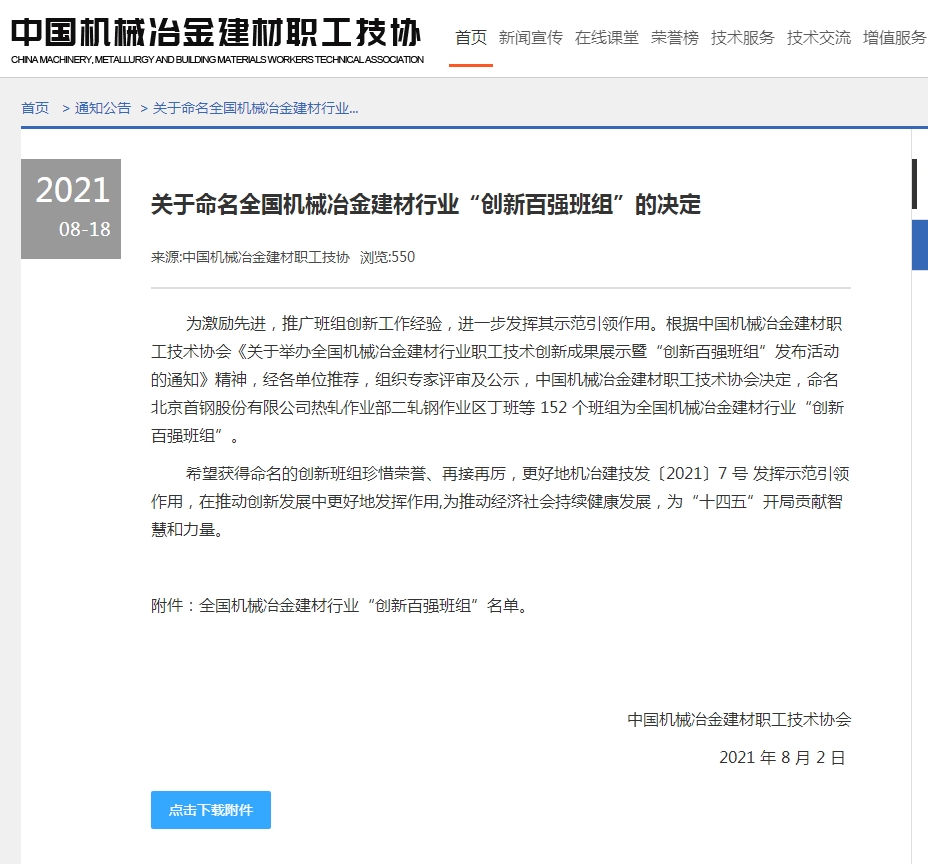 秉持“自我提升”理念,創(chuàng)收創(chuàng)新兩手抓。2021年,國聯(lián)研究院動力電池性能測試評價班組在2020年榮獲有研集團“紅旗班組”稱號基礎上,持續(xù)完善班組規(guī)范化建設,推進管理、創(chuàng)新、創(chuàng)收等方面能力提升,進一步榮獲全國機械冶金建材行業(yè)“創(chuàng)新百強班組”榮譽,實現(xiàn)產值近2000萬,完成行業(yè)標準2項,開發(fā)新檢測方法2項,申請專利6項,發(fā)表SCI論文2篇。