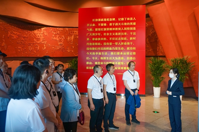 活動(dòng)中,全體黨員追尋總書記足跡,參觀紅旗渠紀(jì)念館,在講解員的帶領(lǐng)下,依次參觀了“序廳”“旱魔”“奇跡”“豐碑”“夢(mèng)想”“精神”等展廳,了解林縣人民飽受干旱煎熬進(jìn)而修渠的感人故事,觀看當(dāng)年修渠使用的工具和大量珍貴的歷史圖片,全面了解了林縣歷史、紅旗渠的由來及建造的全過程。隨后,觀看紀(jì)錄片《紅旗渠》,沉浸式重溫那段戰(zhàn)天斗地,“誓把河山重安排”的光輝歷程。