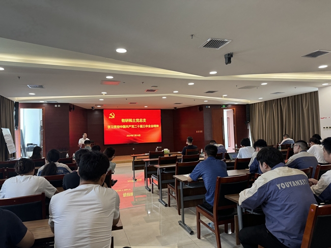 7月24日,有研稀土黨總支召開全體黨員大會,傳達學習黨的二十屆三中全會精神。公司黨總支委員、經(jīng)營班子成員出席會議,所屬各黨支部黨員通過線下、線上相結合的方式參加會議。公司黨總支副書記、副總經(jīng)理許國棟主持會議。